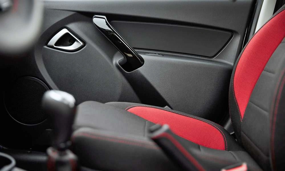 • Обивка сидений ткань. Цвет черный с красными элементами